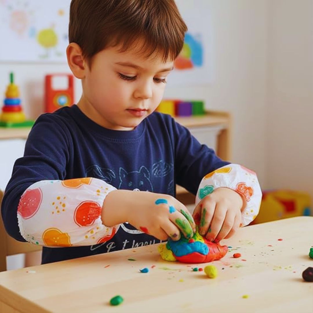 • Functional Excellence: Ideal as waterproof arm sleeves for kids during mealtime, painting, or arts and crafts. Effectively covers clothing from food messes, paint, and glue, making them suitable toddler sleeve protectors for use at home, school, or daycare.