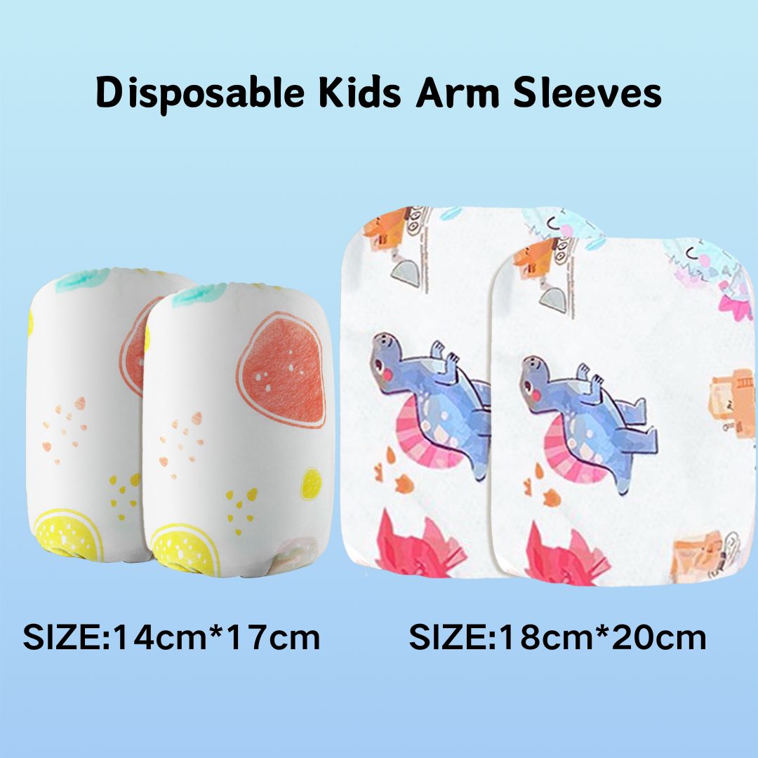 Our Disposable Kids Arm Sleeves feature a triple-layer reinforced structure (thick non-woven top, absorbent core, and waterproof PE backing) to prevent leaks and stains, keeping infants dry during feeding or playing. Made from biodegradable materials, they offer convenience without compromising sustainability—perfect for eco-conscious parents