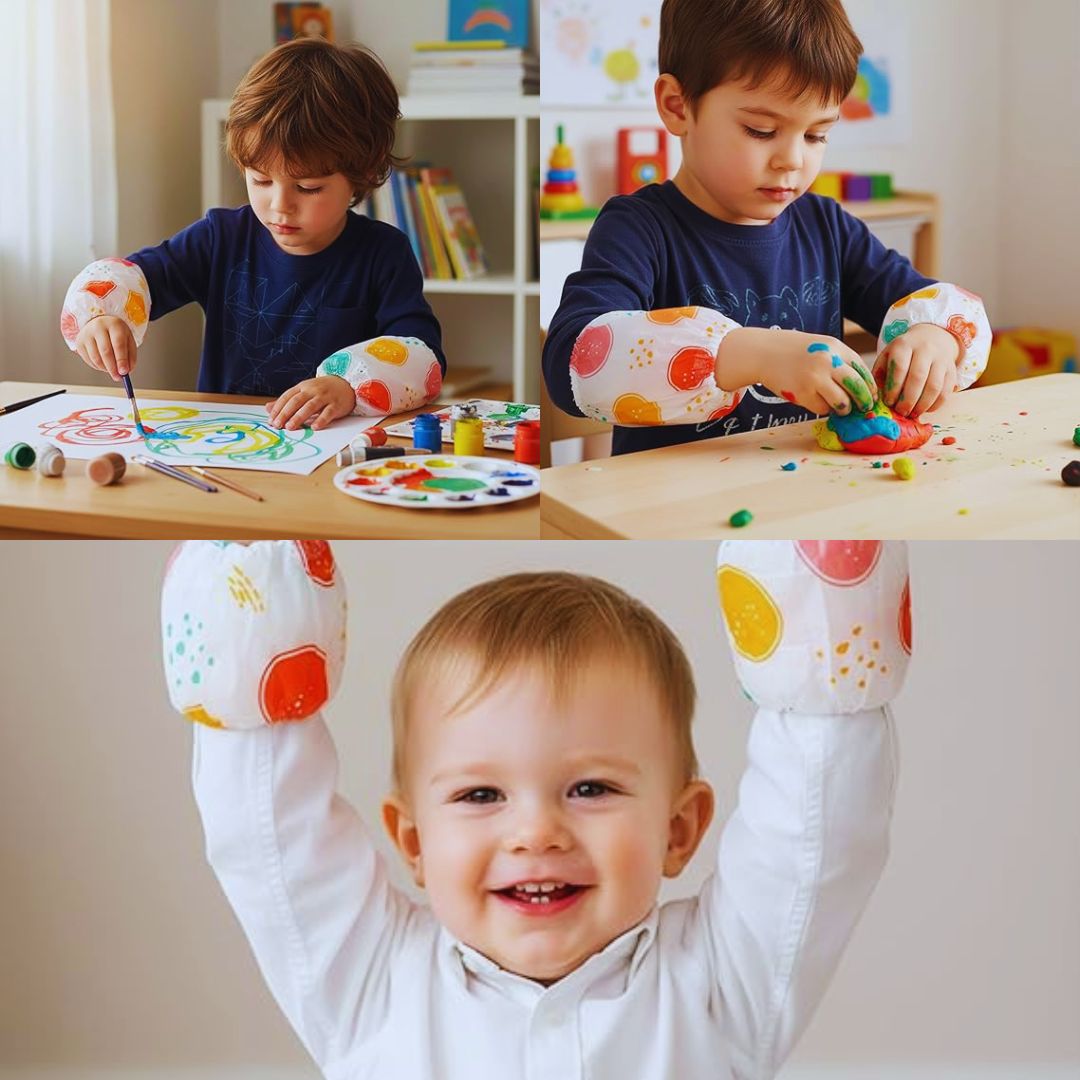 Disposable Kids Arm Sleeves--Waterproof Toddler Sleeve Protectors, Protective Oversleeves for Eating, Painting, Arts & Crafts, Arm Covers for Children